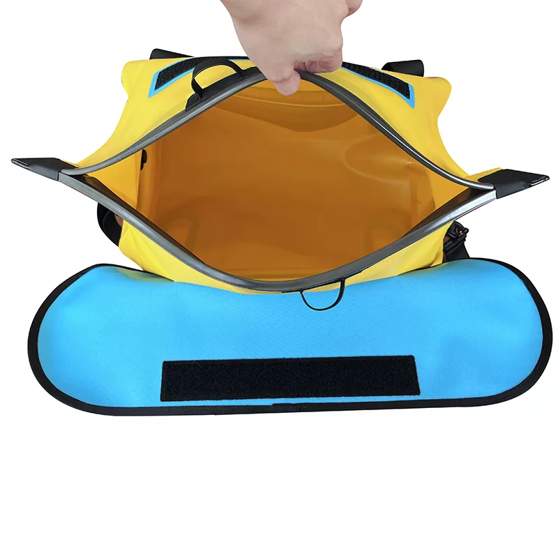 Enkelt bruk og lagring: Et stort hovedrom med en IPX8 vanntett glidelås. Ingen grunn til å brette, eller bare gjøre det en eller to ganger og feste håndtakene. Den myke, fullt sammenleggbare designen gjør lagring til en lek.